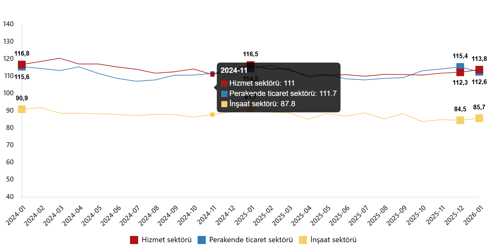Hizmet, Perakende Ticaret ve İnşaat Güven Endeksleri, Ocak 2026