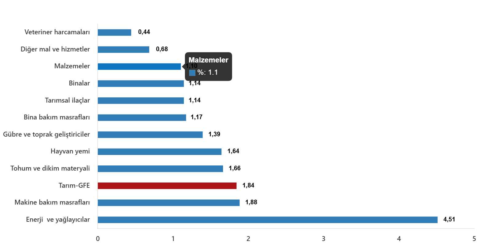 | Tarımda kullanılan mal ve hizmetler | 816,34 | 1,96 | 32,96 | 35,49 | 32,36 |